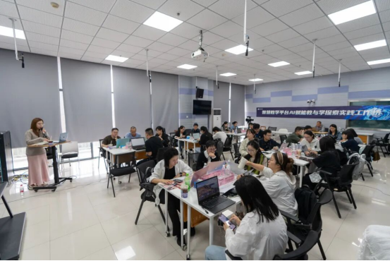 随后的核心环节是平台的AI功能演示与实操。在讲师的逐步引导下,教师们亲身体验了各项AI工具的操作流程。从智能生成教学资源到分析学生学习数据,现场的探索与实践气氛十分热烈。