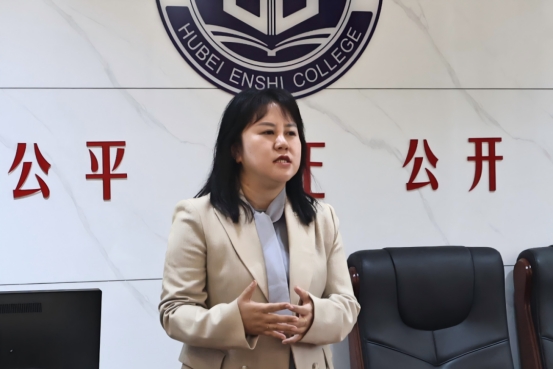 随后,教学质量保障中心副主任杜娟对核心政策文件进行了全面系统的解读。她重点围绕《湖北恩施学院新教师培养管理办法》、《湖北恩施学院2025-2026学年秋季学期新教师“六周成长”培养计划实施方案》及职称评审相关政策展开,清晰构建起新教师成长的“三维一体”支撑体系:“六周成长”计划作为“启航工程”,以“听学改并进”模式分阶段开展沙龙交流、陪同听课、磨课授课、备赛提升等实操训练,为新教师筑牢教学基本功;《培养管理办法》作为“护航体系”,通过全程跟踪、导师督导、成长档案管理等机制,为新教师解决教学实践与职业发展中的实际困惑;职称评审政策作为“方向指引”,明确职业发展路径与评价标准,为新教师成长注入持久动力。